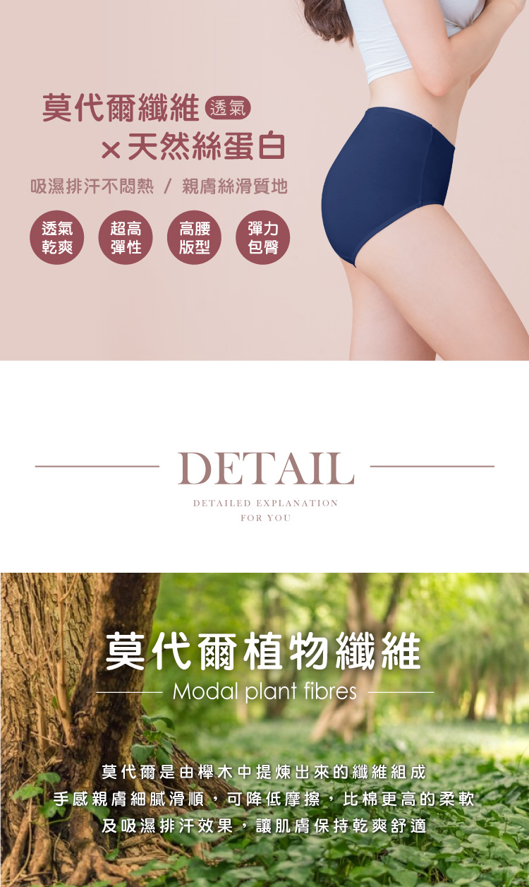 【Clany可蘭霓】美膚保養絲蛋白高腰L-Q(2XL)內褲 海軍藍 2189-57