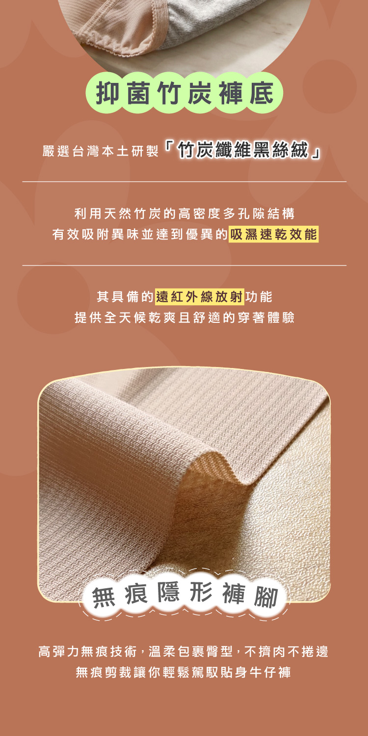 【Clany可蘭霓】黑絲絨抑菌竹炭無痕中腰內褲 M-XL|消臭透氣.舒適包臀 2236-15 裸膚