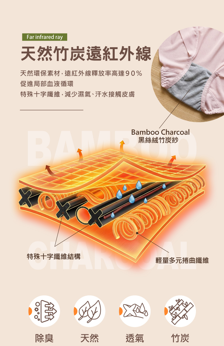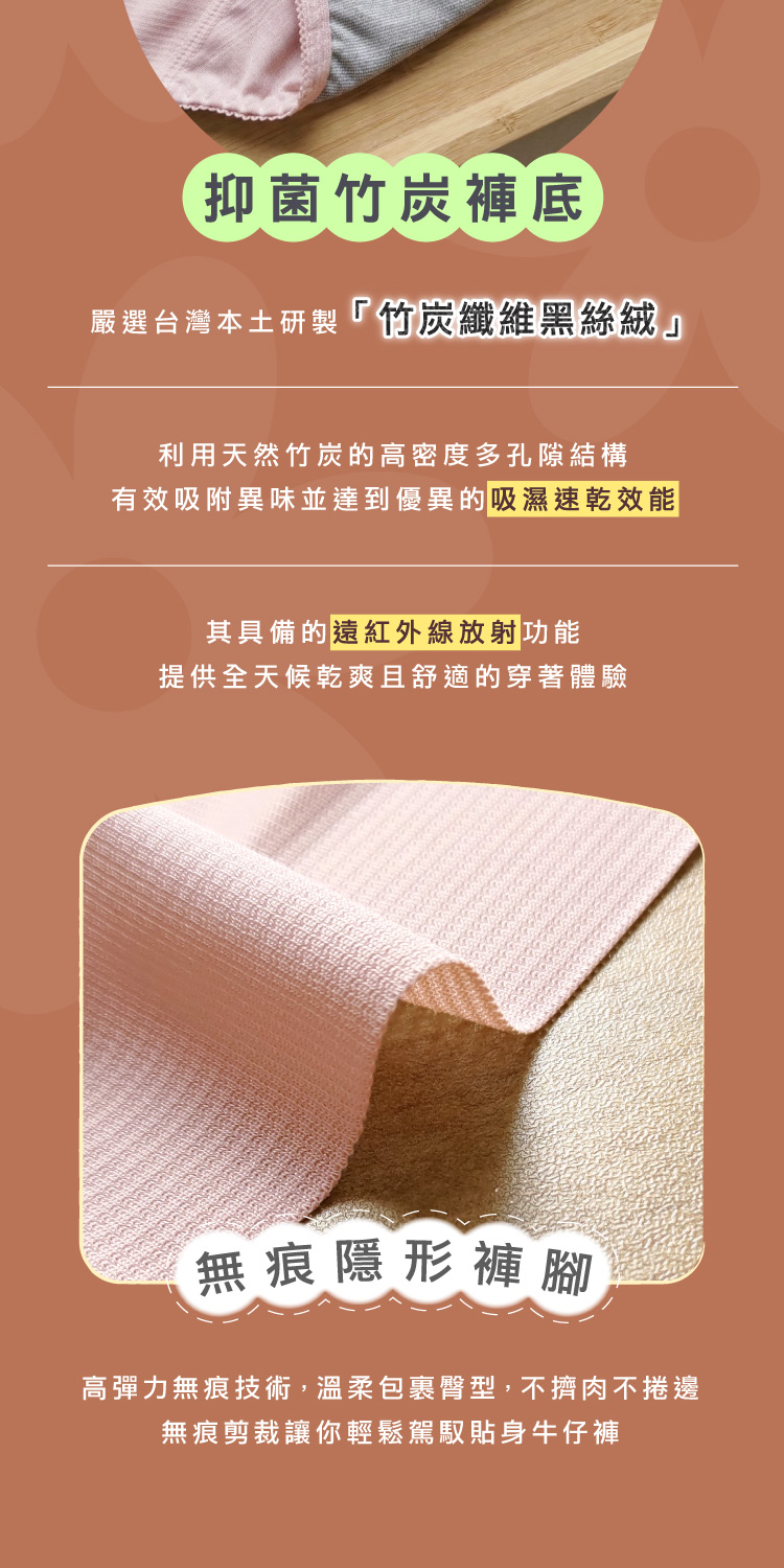 【Clany可蘭霓】黑絲絨抑菌竹炭無痕中腰內褲 M-XL|消臭透氣.舒適包臀 2236-31 淺粉
