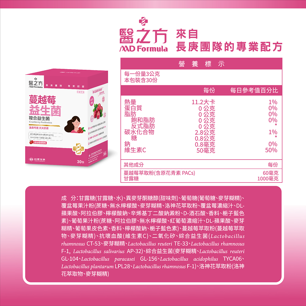 [淳安] 台塑生醫 蔓越莓益生菌 (30包) X 2盒