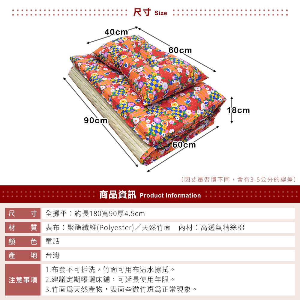 [台客嚴選] 童話竹面單人透氣床墊附枕 台灣製 學生床墊 單人床墊