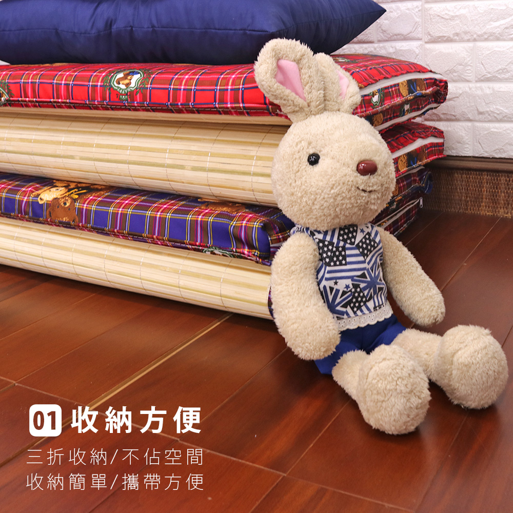 ◆商品資訊: 尺寸:(攤平) 長180㎝×寬90㎝×厚4.5㎝(三折) 長60㎝×寬90㎝×厚18㎝(枕頭) 長40㎝×寬60㎝×厚15㎝(以上規格為人工丈量會有微誤差約正負2公分內)材質:(表布) 聚酯纖維(polyester)+天然竹面(內材) 高透氣精絲棉 顏色:皇家紅熊/皇家藍熊/英倫藍/英倫紅重量:(床墊) 3㎏(枕頭) 0.6㎏ 產地:台灣/台南市 ◆小叮嚀:1.布套建議不拆洗,若需拆洗僅可【手洗】,清洗前請先將內棉取出再清洗。2.竹面若有沾濕,請務必要曬乾,以免因潮濕而發霉。3.亦可搭配市售單人床包使用,拆洗較便利。4.使用前建議先擦拭竹面,天然竹面無上膠,表面會有小細竹削。5.竹面為天然產物表面些微竹斑為正常現象。6.建議定期曝曬床鋪,可延長使用年限。 【關於運費】