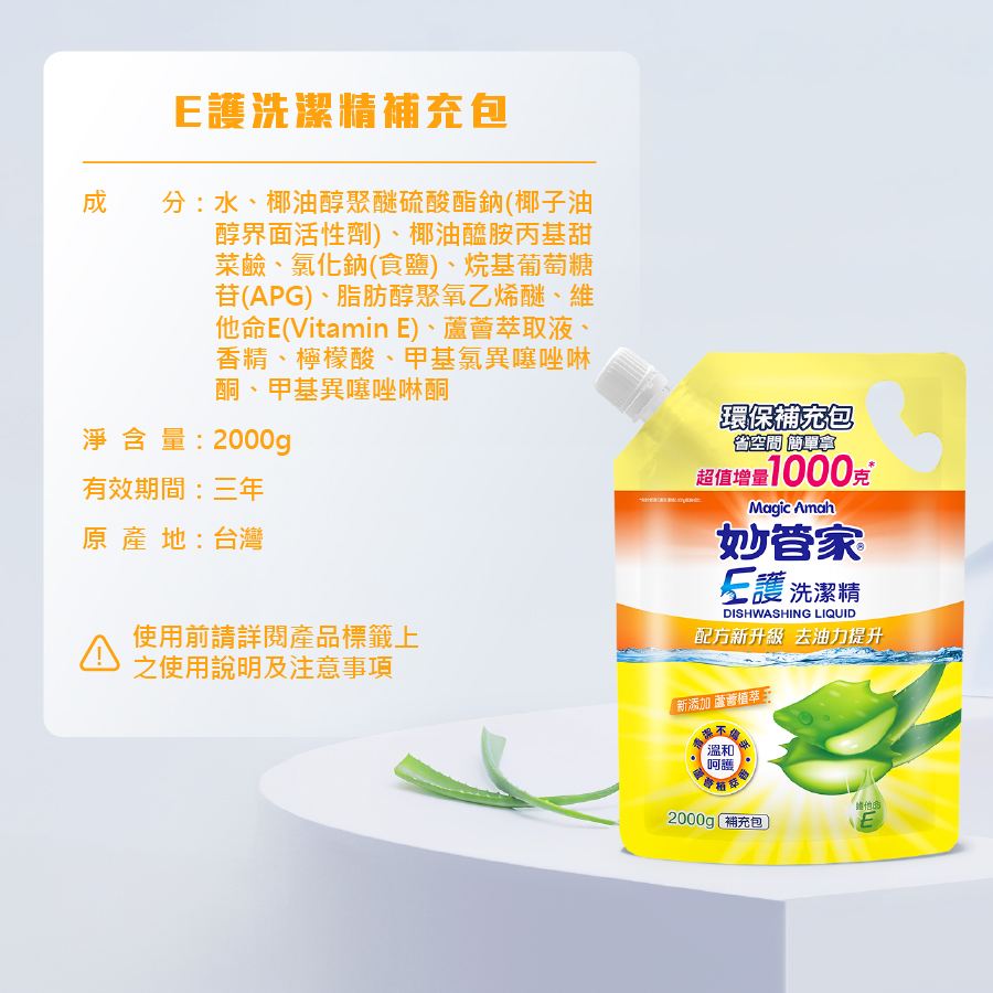 妙管家E護洗潔精補充包2000g