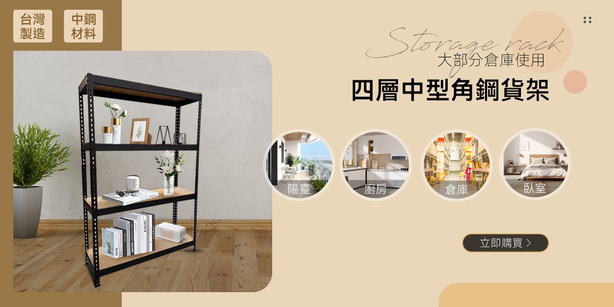 [台灣湧利企業有限公司]免螺絲角鋼架 4尺*2尺*高6尺耐重角鋼架 黑色 四層 總荷重1噸