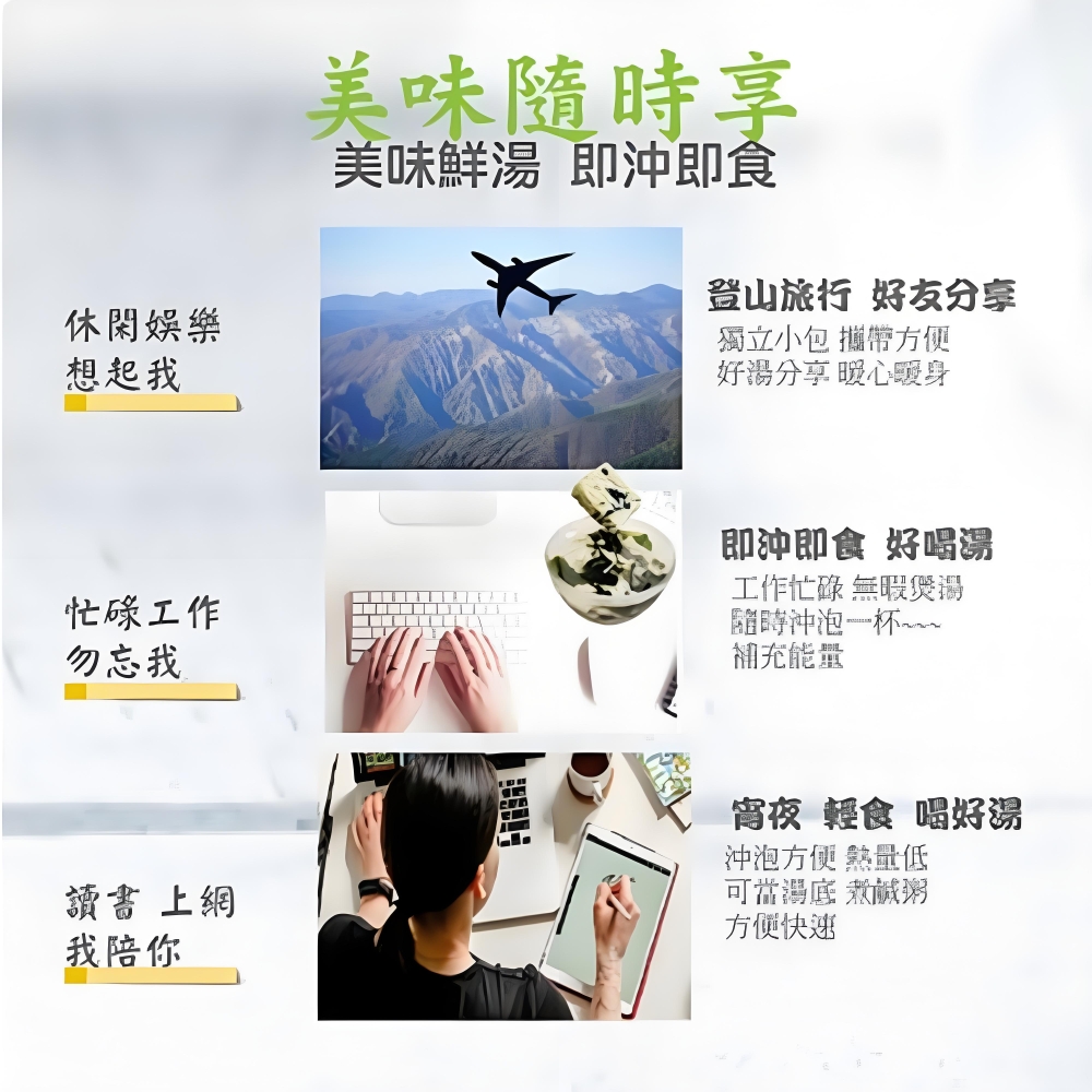 🍵美味鮮湯🍵即沖即食🍵🍵營養美味🍵攜帶方便🍵🍵真空 冷凍 乾燥技術 🍵沖泡方便🍵