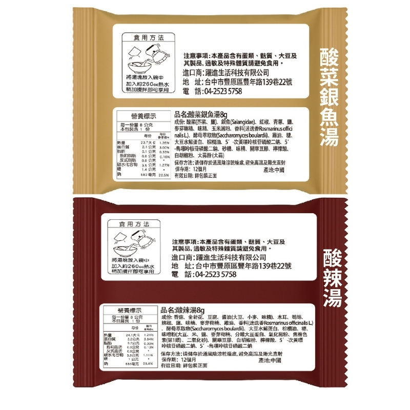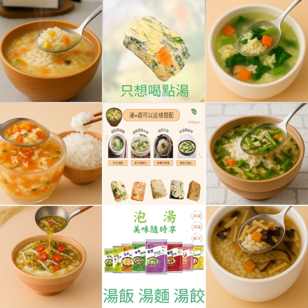 Soup ~蘇伯湯包~總能在你最需要的時刻出現在這個匆忙的現代生活中,我們常常需要應付各種突如其來的挑戰。不論是辦公室上班族的加班夜晚、學生宿舍的深夜寫作,還是在戶外探險中突然感到一絲飢餓的襲來, 需要補充體力,蘇伯湯包,總能在你最需要的時刻出現。想像一下,你正在工作或旅行,突然感到一絲飢餓的襲來,但附近卻找不到一家餐廳或便利商店。這時,Soup ~ 蘇伯湯包成為你的良伴!只需備一杯熱水或温水,輕輕將湯塊放入杯中,稍作攪拌,瞬間湯汁即刻湧現。這種瞬間的便利性使你能夠在任何場合,無論是辦公室、旅行中或是居家,輕鬆品嚐到美味的湯品。Soup ~蘇伯湯的香氣彷彿在你的鼻腔中繚繞,傳遞著濃郁的美味。你將湯杯舉至嘴邊,輕啜一口,溫暖的湯汁滋潤著你的喉嚨,湯的味道在你的味蕾中綻放。無論是在寒冷的冬天中,或是需要迅速補充體力的時刻,蘇伯湯包都能滿足你的味蕾和胃。Soup ~蘇伯湯包,就是你生活中的小幫手和美味之源!無論你需要宵夜、早餐、輕食,還是火鍋湯底的絕佳選擇,都能在Soup ~湯包中找到。讓我們一起享受這種即時方便的美味吧!🥣不要錯過Soup ~ 蘇伯湯包的瞬間美味,立即試試看吧!Soup ~蘇伯蛋花湯、即時湯包、速食湯,一切都在等待你的發現。 #方便湯 #美味瞬間 #蘇伯湯包 #湯品享受 #即時好味🥬宵夜早餐輕食好幫手湯採用真空冷凍乾燥技術 將物料中的水分低溫蒸發保留了湯的色香味形及營養成分,非油炸的食品!🥬Soup ~台灣蘇伯~即食速食湯 可任意自選搭配口味! 3秒鐘料理!熱水沖下去,馬上化開即可飲用美味湯品.60度溫水也ok!亦可當麵條麵食湯底 火鍋湯底 還可搭配即食🥬粉絲、 麵、湯飯、湯餃!方便飲用 🥬蒟蒻搭配湯包 像極了愛情👫🥬台灣蘇伯湯包 即時湯包 蛋花湯 速食湯 宵夜早餐 輕食 方便湯 沖泡湯 即食湯 湯包 火鍋湯底 湯品🥬台灣蘇伯🥬🍵美味鮮湯🍵即沖即食🍵🍵營養美味🍵攜帶方便🍵🥬台灣蘇伯系列🥬 產地:中國, 台灣監製