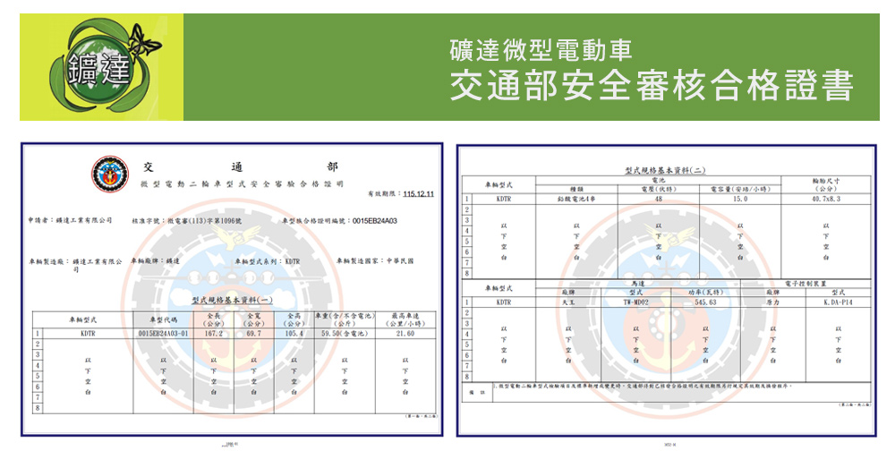 (車架)商品規格:車 型:Mini Hero PEG-082車廠型號:鑛達 小偉士車身尺寸: 168.8*70*109.7cm坐墊高度:69CM輪胎尺寸:3.00-10電池型式:鋰電池/台灣製造(工研院防爆專利配方)電池規格:48V16Ah使用電壓:110v-120v充電時間:3-4小時煞車系統:前後碟剎系統及煞車斷電安全裝置控制系統:正弦波電控無刷輪轂馬達馬達功率:983.49W欠壓保護:有最高時速:不超過25km/h續航里程:約35~40km爬坡能力:約10%安全載重量:100kg定速巡航:有前/後方向燈:前有/後有備 註:續航力會隨著各種因素而變化,例如騎乘重量、坡度、路面情況等等,另外正常情況下電池會逐漸老化,也會影響續航力。(ASP52016/16Ah鋰電池)商品規格電池類型:鋰電池(工研院防爆專利配方)電池容量:16AH電池電壓:48V保固時間:2年保固(限本賣場)電池產地:台灣(有量科技製造)註1. 最高續航力為實驗室測試值,模擬55Kg載重於定速25Km下的最高行駛距離,實際續航力因載重條件、個人騎乘習慣、騎乘路況與天候狀況不同而有所差異。註2. 充電時間是電池從零電量至充飽電的耗時,實際充電時間視當時殘餘電力與充電功率大小而定。產品名稱:電動(輔助)自行車用二次鋰電池組Type(型號):ASP-52016Nominal Voltage(額定電壓):48VDCTypical Capacity(額定容量):16AhMax. Current(最大電流):30ACharging(充電):請使用指定的充電器CNS電池名稱:14CNi-Mn-CoP10/99/131製造年份/號碼:依電池上序號顯示製造者:有量科技股份有限公司地址:桃園市龜山區茶專路6號BSMI證書號碼:CI458061760026號99識別號碼:R45176本商品標準配備:車體 X1保卡及說明書 X1鋰電池x1充電器X1後靠背X1後視鏡X1(組)1年保固期保固內容:以本車所提供之品質保證書內容條款詳述,鋰電池保固兩年(只限本賣場),車架、電機馬達、電子控制器、充電器、保固一年, 各項開關按鈕、轉把、喇叭、DC轉換器保固三個月,外殼塑件、燈泡、車胎、剎車皮屬消耗品無提供保固。 保固適用地區:台灣本島所使用之本公司電動自行車。