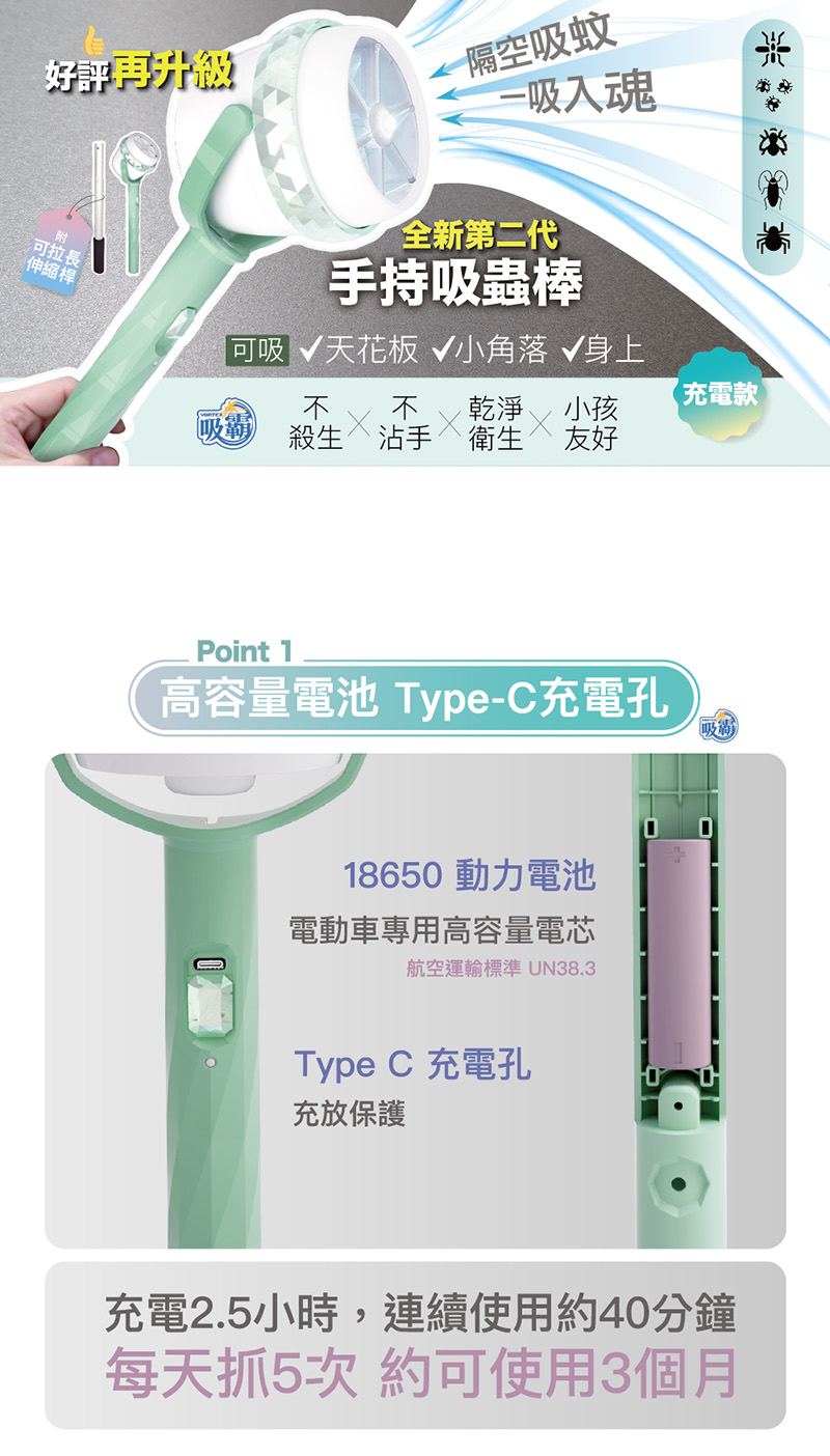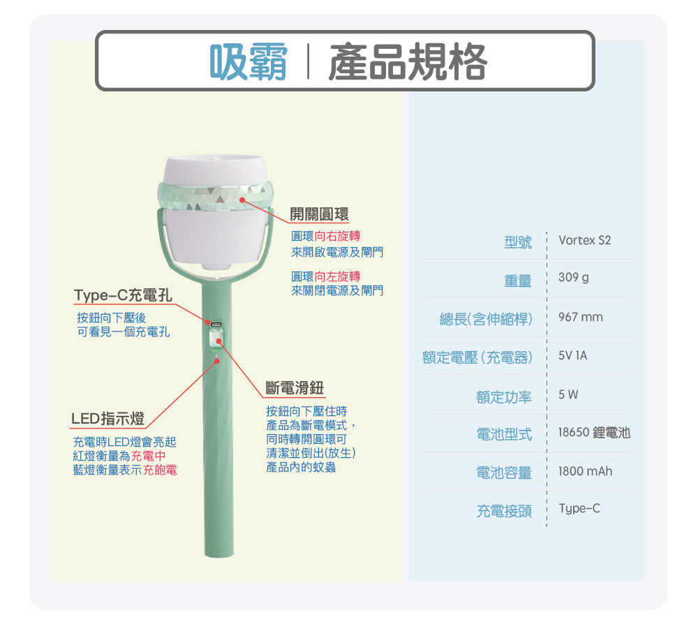 吸霸 吸蟲捕蚊器 VORTEX-S2 (豪華充電款-附伸縮桿)