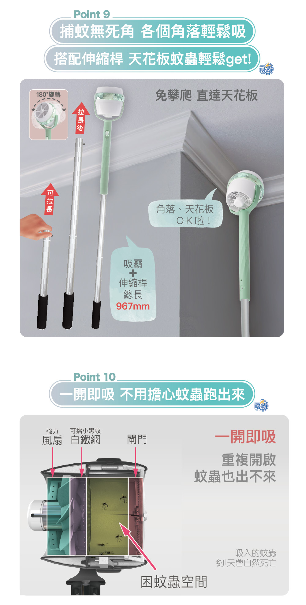 有效吸蚊|擁有足夠的吸力強度,就算蚊子想飛走也會被吸回來