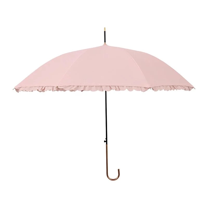 【周周生活】晴雨選品館|抗UV晴雨兩用直傘 日系蝴蝶結荷葉花邊 淺粉紅 自動開傘 輕量陽傘