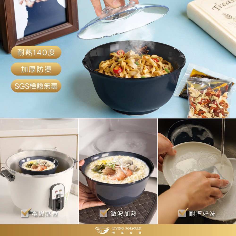 【商品規格】品名:潔晶麵碗材質:CPET(結晶PET)耐熱溫度:140℃至-20℃容量:1050ml尺寸:外徑 171mm X 高 84mm產地:台灣有效期限:五年顏色:恬靜白、春茶綠、暮夜藍回收:回收標誌1號,屬於PET材質【產品使用注意事項】1. 本產品僅供食品接觸用途。2. 本產品符合循環經濟,可回收再製粒做工業循環使用。 3. 本產品通過中華民國食品容器規範檢驗。 4. 本產品可用紫外線消毒。 5. 本產品可重複使用。6. 本產品非調理器具,請勿直接置於火源上。7. 請勿加熱空食器。8. 清潔時,請勿使用硬物、鋼刷或粗菜瓜布。9. 勿將CPET潔晶餐具直接置於蒸鍋底部,需放置「蒸架」於電鍋內,方可使用煮、蒸、燉等功能。【貼心提醒】🔸食器可用於微波爐、電鍋、洗碗機、烘碗機、蒸氣/紫外線消毒鍋。🔸商品顏色僅供參考,色樣會因電腦螢幕設定不同而有誤差,顏色以實際商品為主。