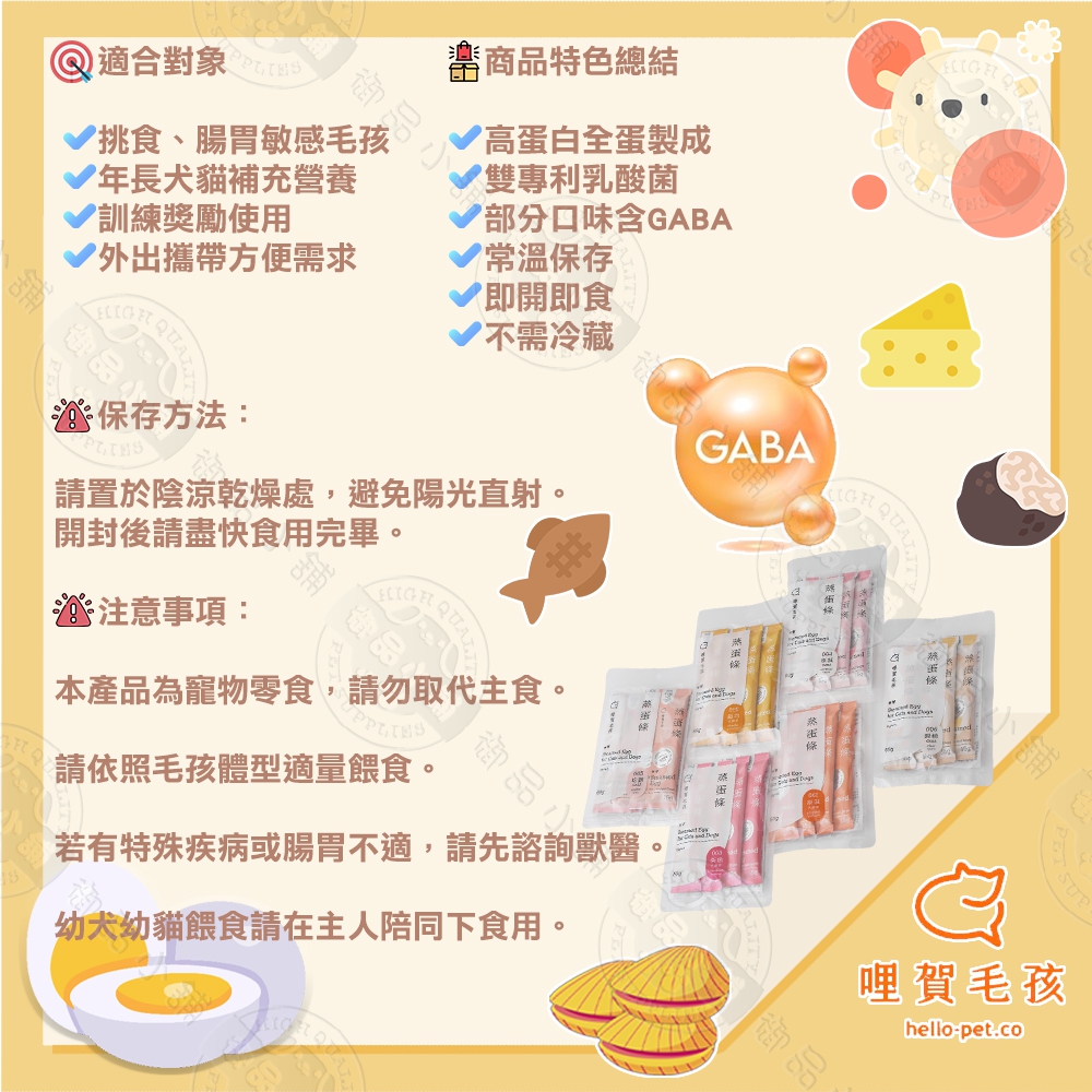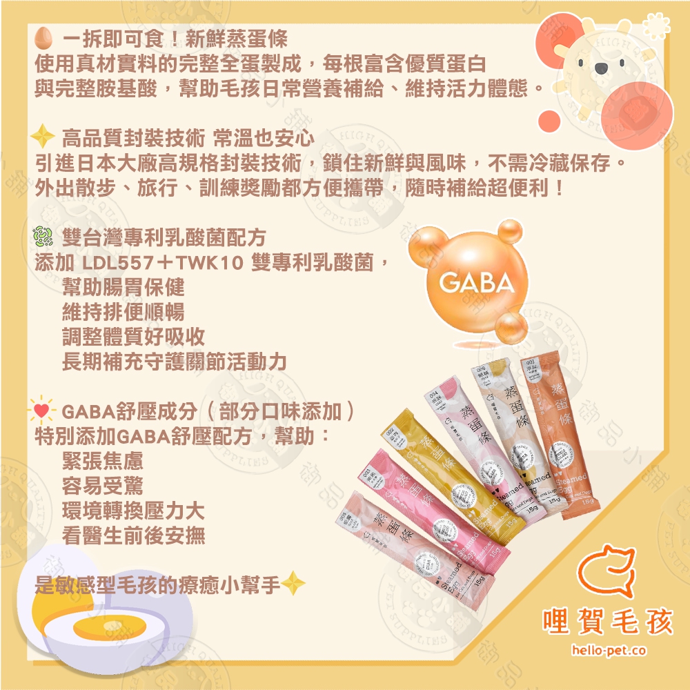 6包組 94%新鮮蒸蛋條15g/條(4入) 貓狗專用營養點心 全蛋製成高蛋白 添加乳酸菌 GABA舒壓配方