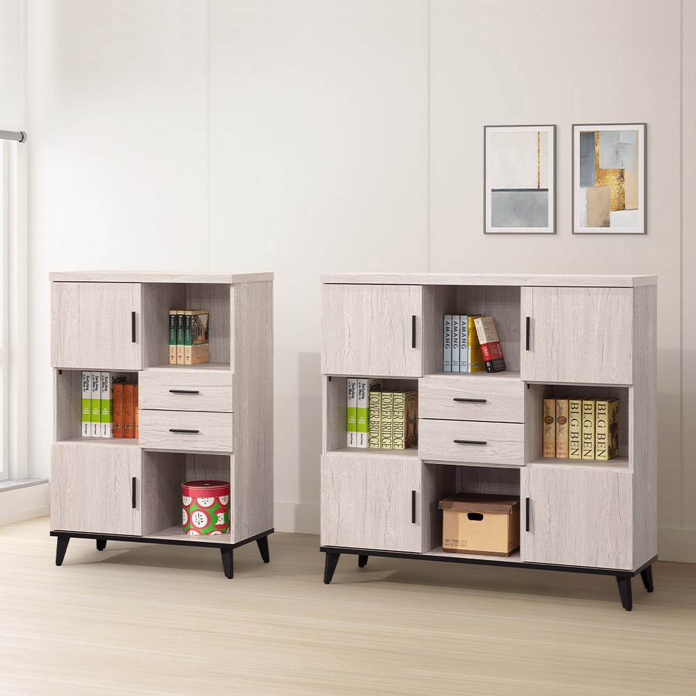 多樣化收納空間:結合了封閉式櫃門、開放式層櫃和實用抽屜三種收納形式,滿足不同物品的分類需求,無論是書籍、裝飾品或是日常用品,都能找到完美的歸屬。