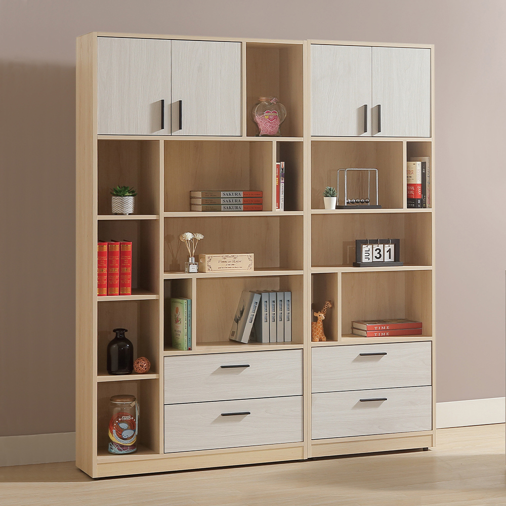 收納空間:上層雙門櫃可收納較少使用的物品、雜物或備品;中間開放格適合擺放書籍、植物或裝飾品;下層抽屜可以放置小物、文件資料或是想要隱藏的物品。多隔層結構,分類清楚,可以依照物品大小靈活擺放,兼具展示與實用的多功能書櫃。