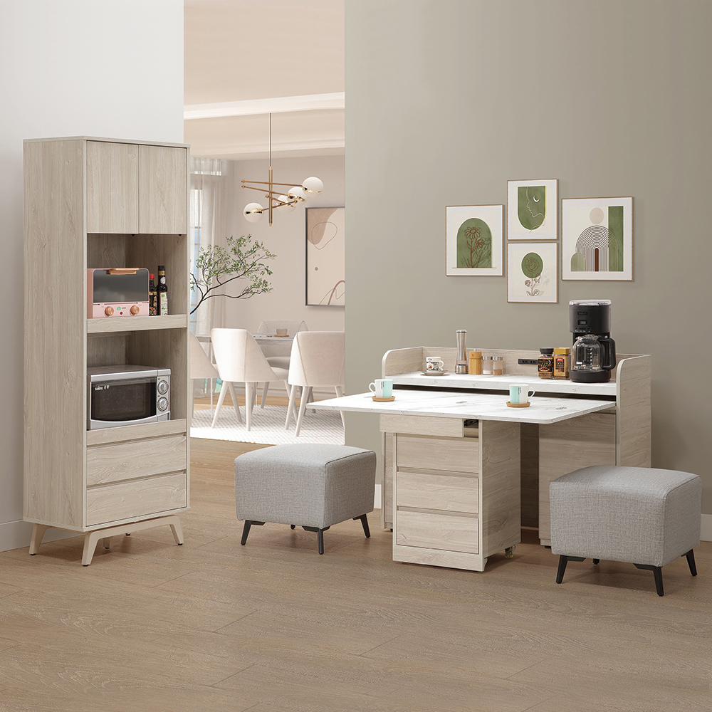 『在忙碌的生活裡,為自己留一片餘裕的空間。它不僅是收納的好幫手,更是您隨時展開溫馨餐桌的角落。讓家的每一寸光景,都充滿實用又美好的自然氣息』