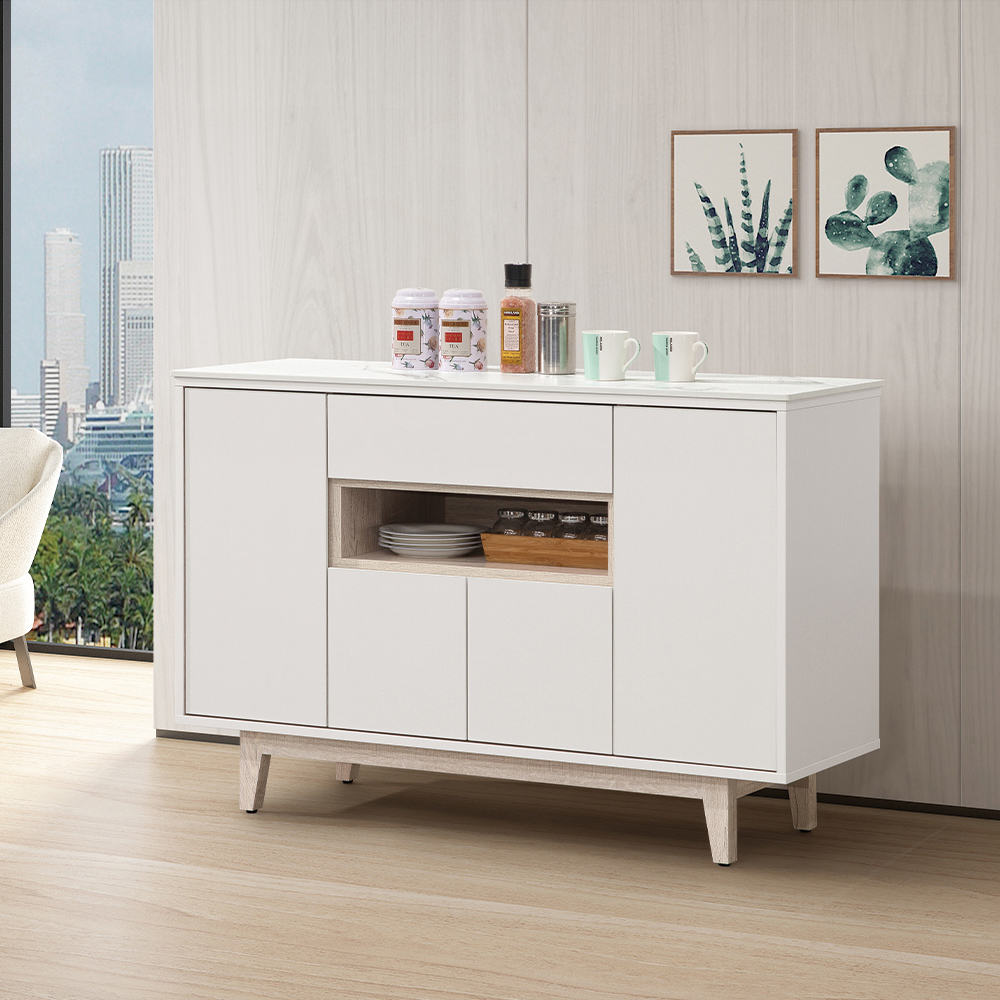 【唯熙傢俱】紀薇橡木雙色4尺岩板餐櫃