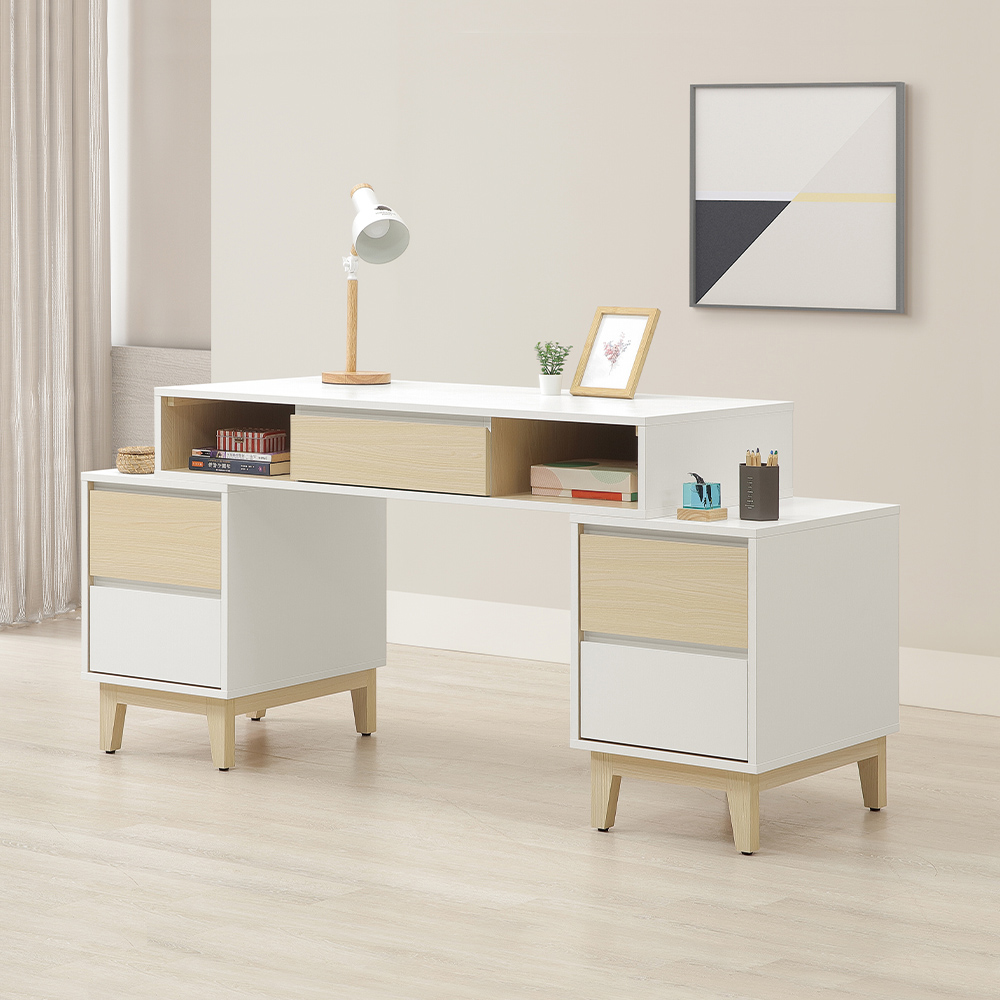 收納功能:配有雙層抽屜,上層可放置眼鏡、藥品等常用品,下層則適合收納書籍或私人物品;平整的檯面,可以放置檯燈、手機與水杯,讓所需的小物都能各就其位。