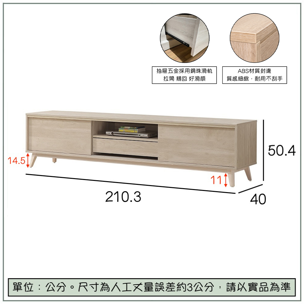 【唯熙傢俱】曼蒂橡木色7尺電視櫃