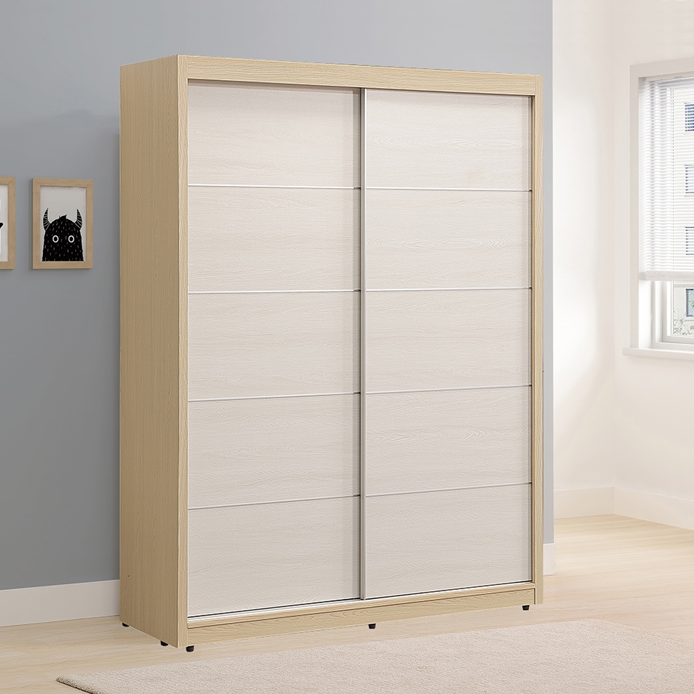 【唯熙傢俱】雷莎原木雙色5x7尺滑門衣櫃