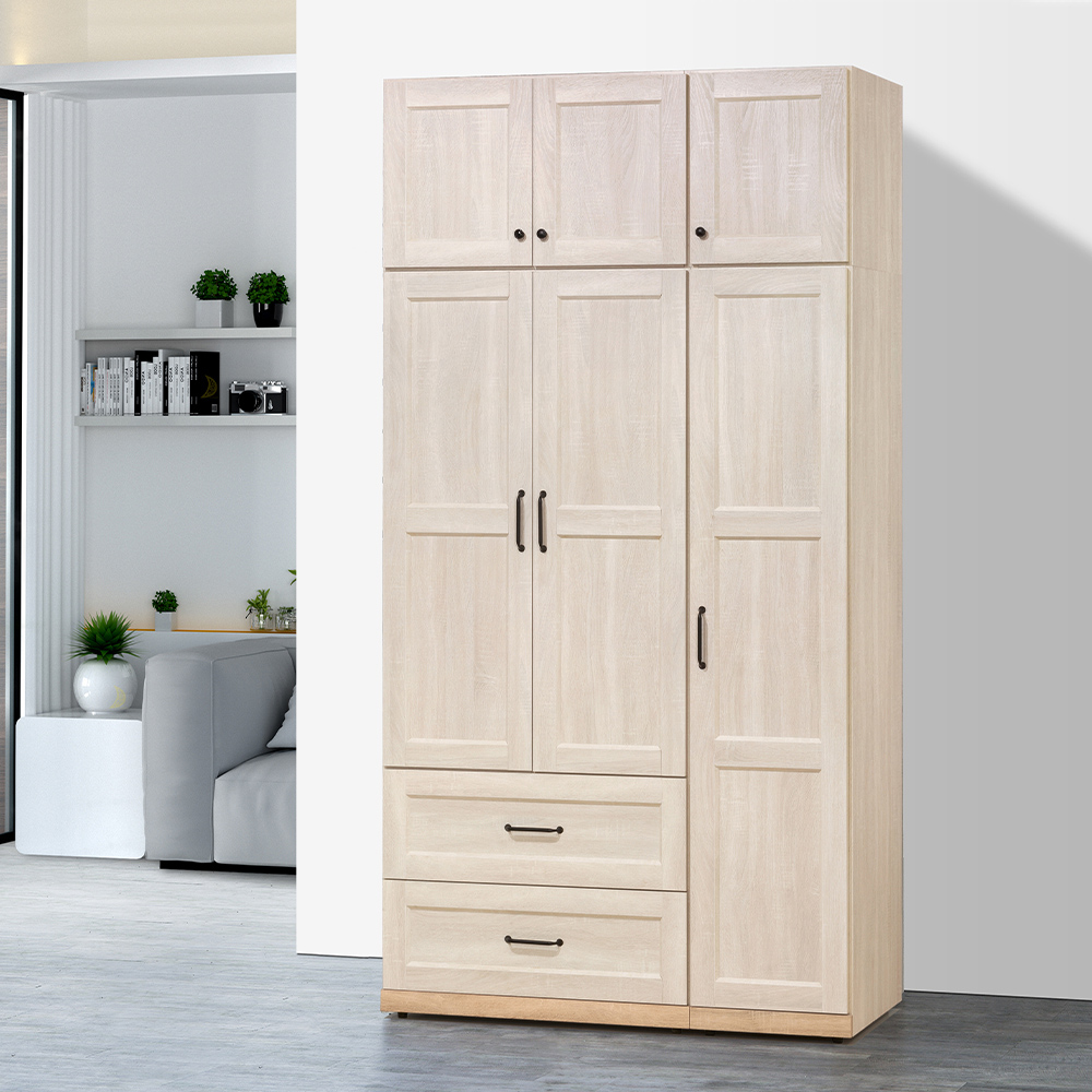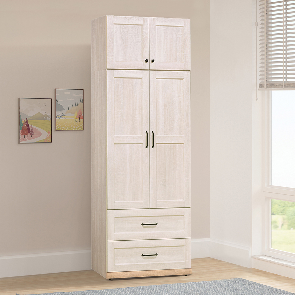 【唯熙傢俱】查理白橡色2.6尺抽屜衣櫃