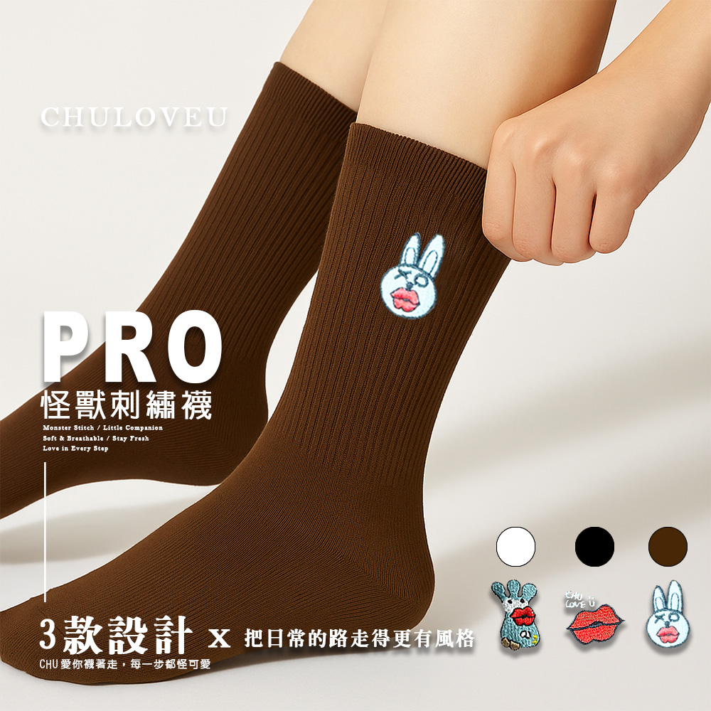 商品名稱:啾愛你PRO怪獸刺繡襪
