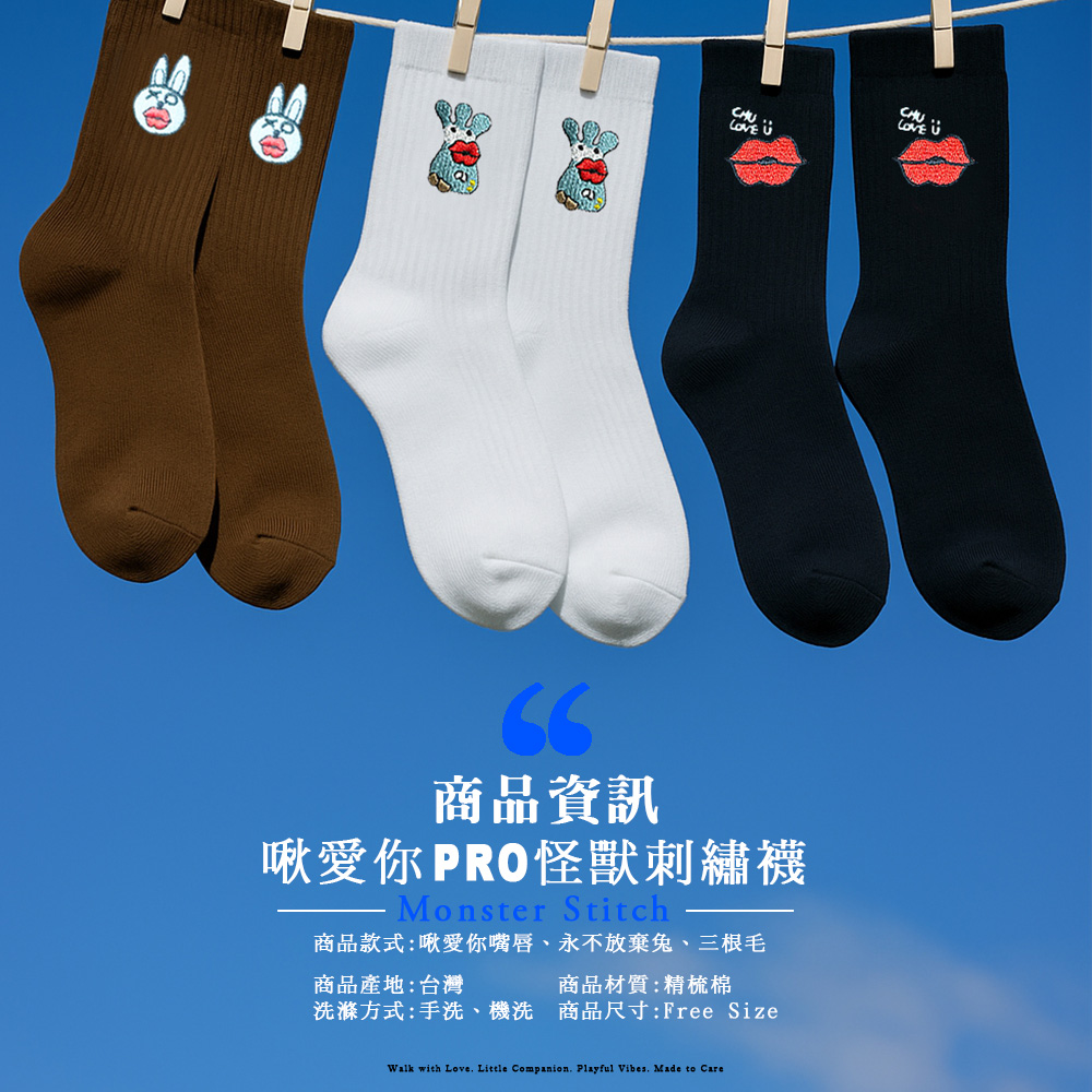 商品名稱:啾愛你PRO怪獸刺繡襪