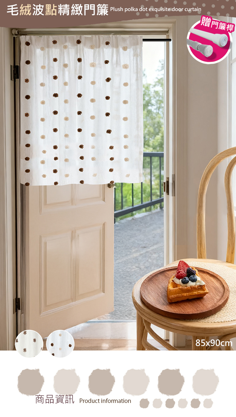 [喵到寶] 透光不透人毛絨波點門簾85*90cm送門簾桿(門簾/長門簾/隔簾/穿桿窗簾/短簾/咖啡簾)