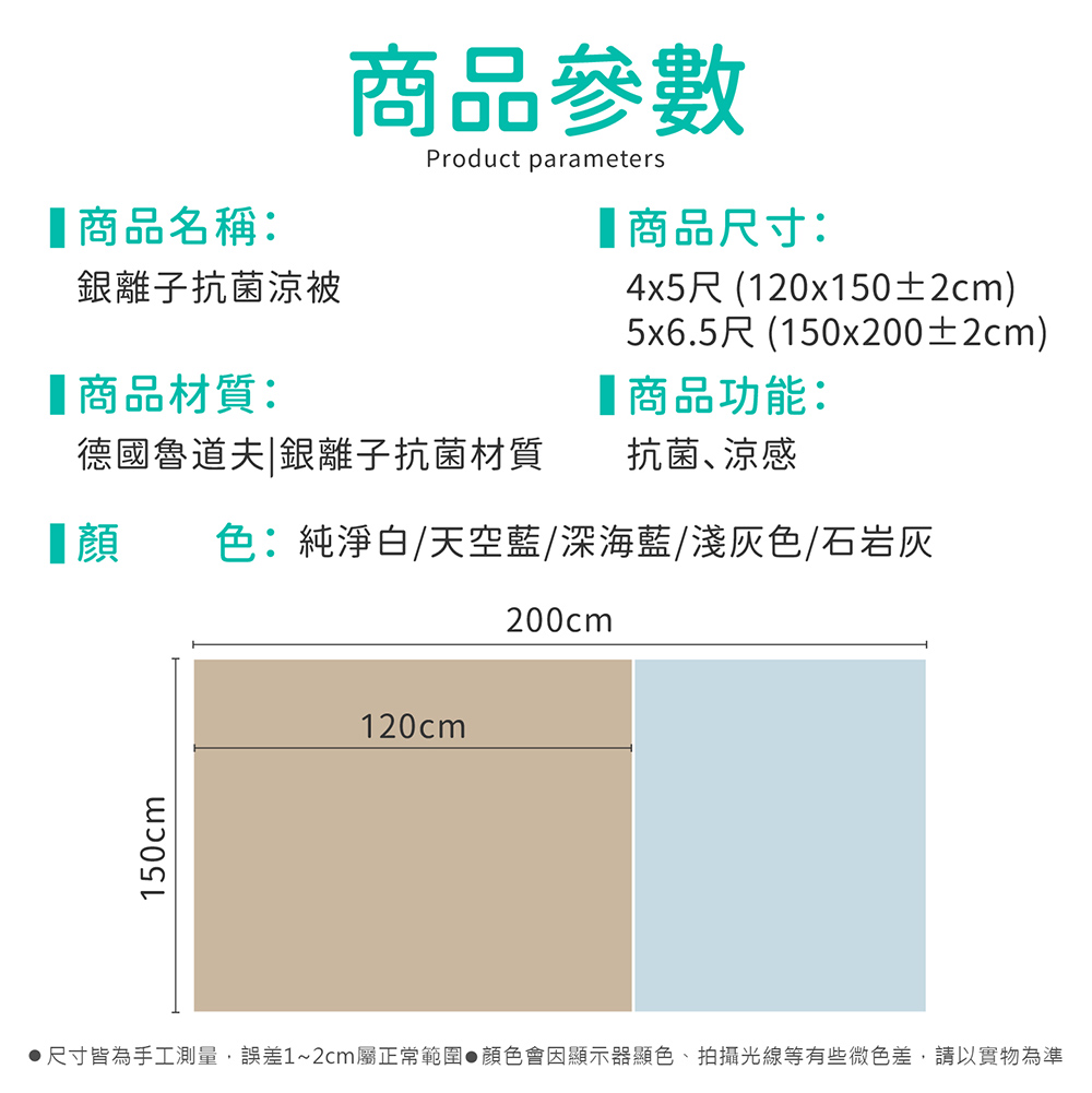 【嘟嘟屋】銀離子抗菌涼被 5x6.5cm