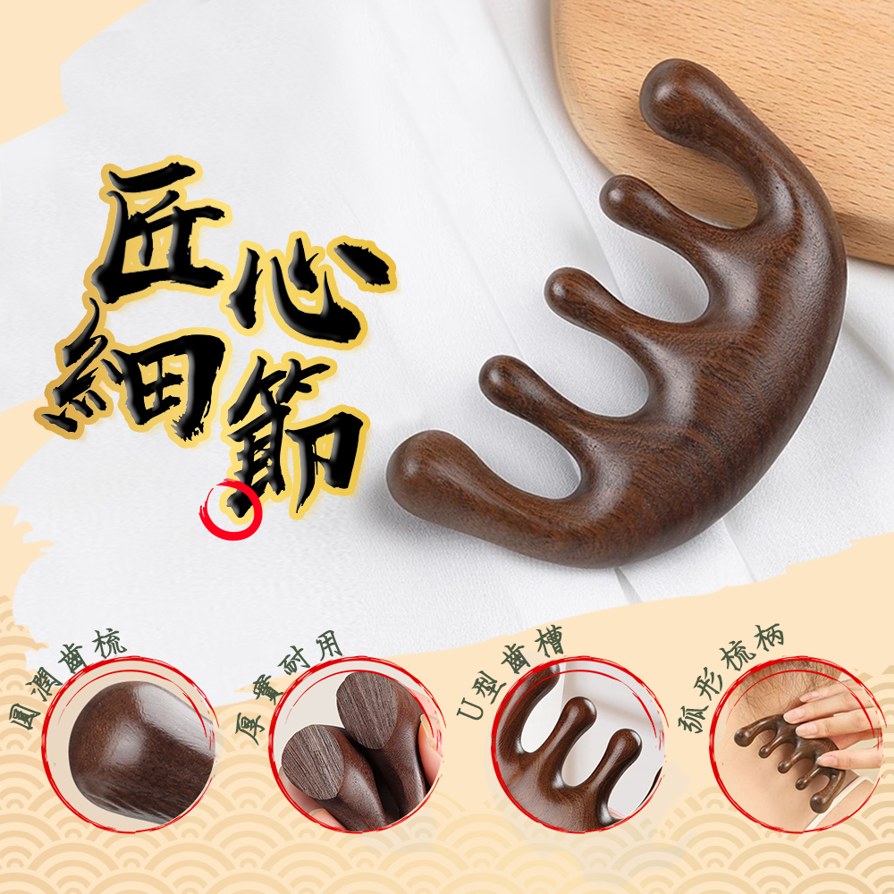 [夢巴黎] 金絲檀按摩梳 按摩梳 木梳 梳子 刮痧板 頭皮按摩梳 經絡梳 頭皮按摩 頭皮按摩器 頭部按摩器 按摩器 按摩