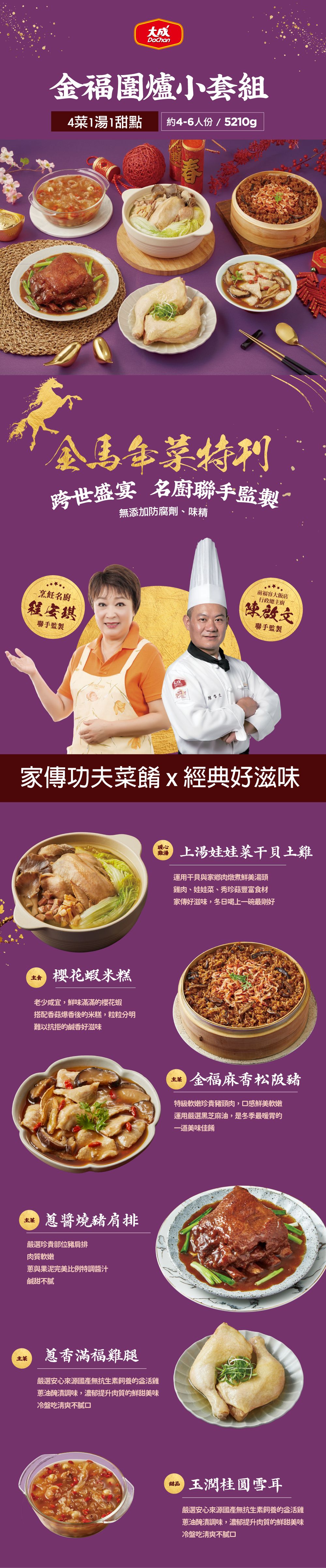 【大成食品】2026金馬年菜-金福圍爐小套組(約4-6人份/5120g/4菜1湯1甜點) *早鳥價至12/31*