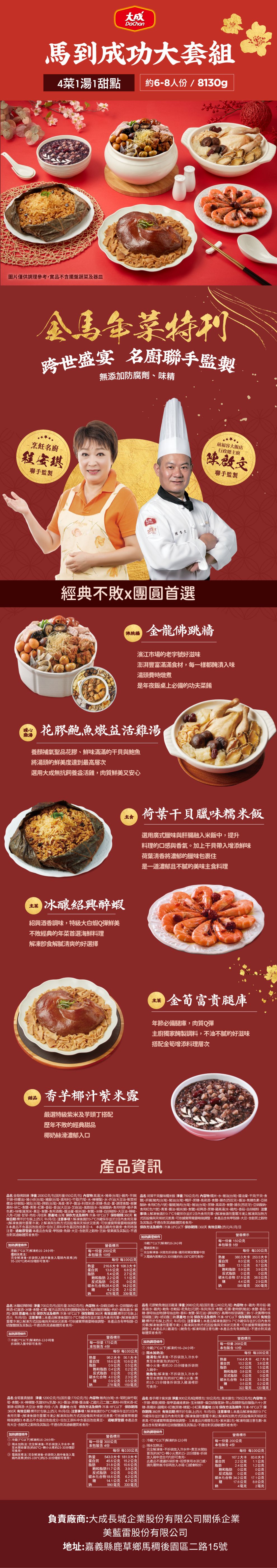 【大成食品】2026金馬年菜-馬到成功大套組(約6-8人份/8130g/4菜1湯1甜點) *早鳥價至12/31*