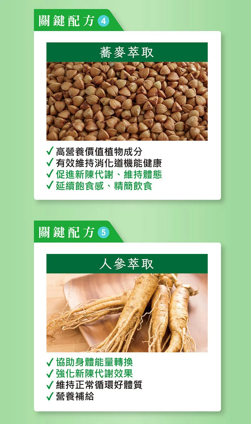 腸胃蠕動、體質調整幫助消化,可調節營養成分吸收度延續飽食感,促進新陳代謝內容物名稱:仙人掌莖葉粉、微晶纖維素、明膠、苦瓜粉(含苦瓜胜肽)、仙楂果粉、人參粉、蕎麥粉、麥門冬粉、桑葉萃取物、乳糖、巴拿巴葉萃取物(含科羅索酸)、水、葡萄糖酸鋅、二氧化鈦、紅花黃色素、藍莓色素食用方式:每日2粒,當作輔助食品,建議於餐後食用,效果最佳,請勿咀嚼以免破壞成分,多食無益。適用對象:一般成人、長期外食族、新陳代謝較差者、銀髮族。過敏原標示:本產品含有牛奶來源之原料。※ 製造日期與有效期限,商品成分與適用注意事項皆標示於包裝或產品中※ 本產品網頁因拍攝關係,圖檔略有差異,實際以廠商出貨為主※ 本產品圖片.文案若有變動差異,敬請參照實際到貨商品為準