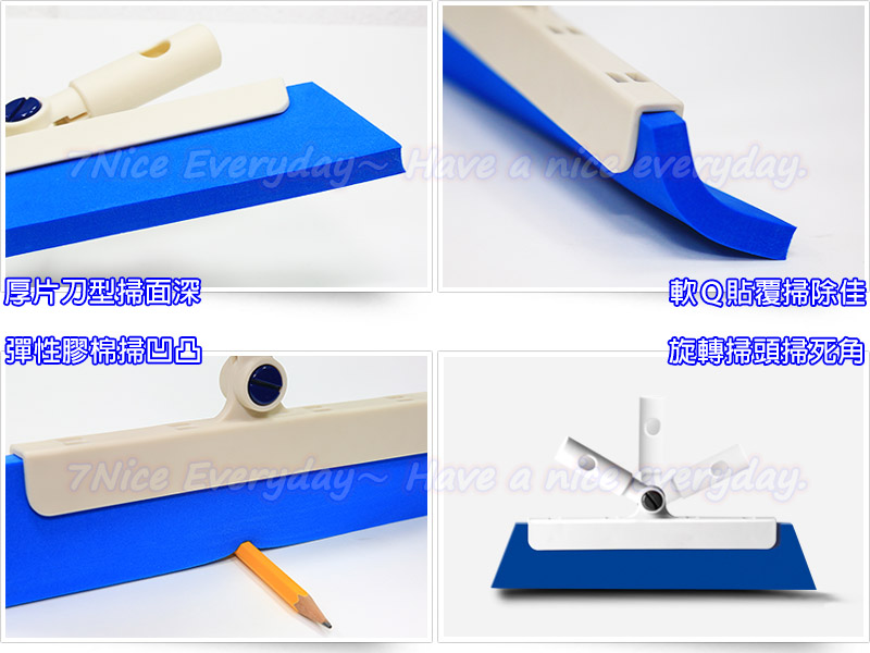 1.快速接頭,拆裝方便。2.不沾黏毛髮灰塵,容易清洗。 3.優力膠具柔軟彈性,黏地力佳。 4.耐用不變形,除塵、去污、刮水樣樣行。