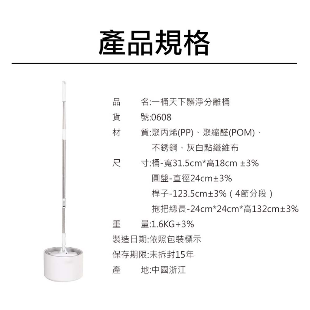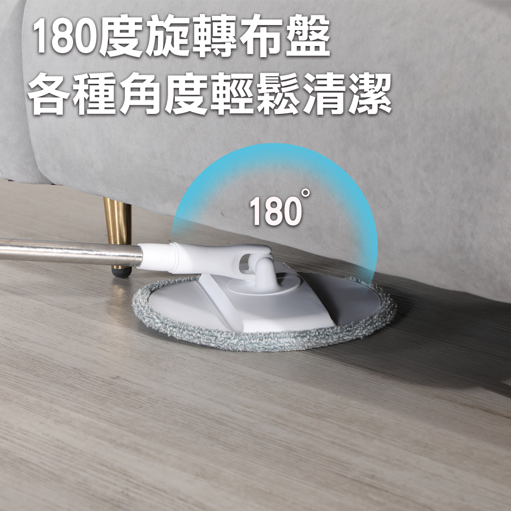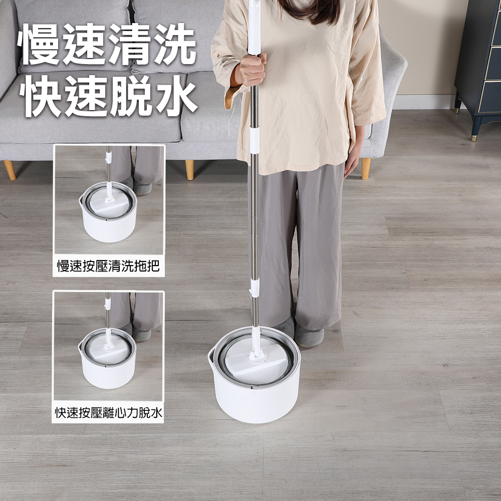 5.拖地-將纖維布安裝在圓盤上,圓盤中心凹洞對桶中心突出點,密合後握桿向下慢速洗布、快速轉即可開始拖地。