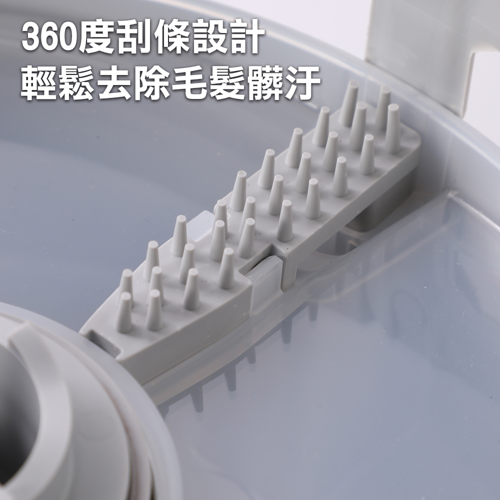 3.清洗-將拖把桿下方扣環往下扳開,對準桶內軸心,壓慢即可清洗。