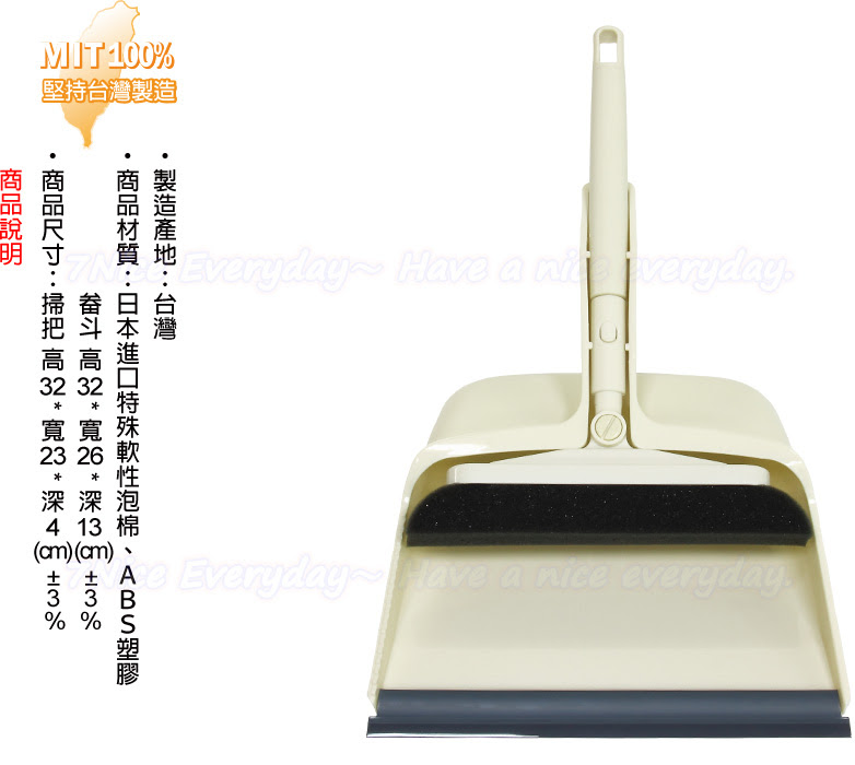 掃把:(H)32cm × (W)23cm × (D)4cm ± 5%畚斗:(H)32cm × (W)26cm × (D)13cm ± 5%