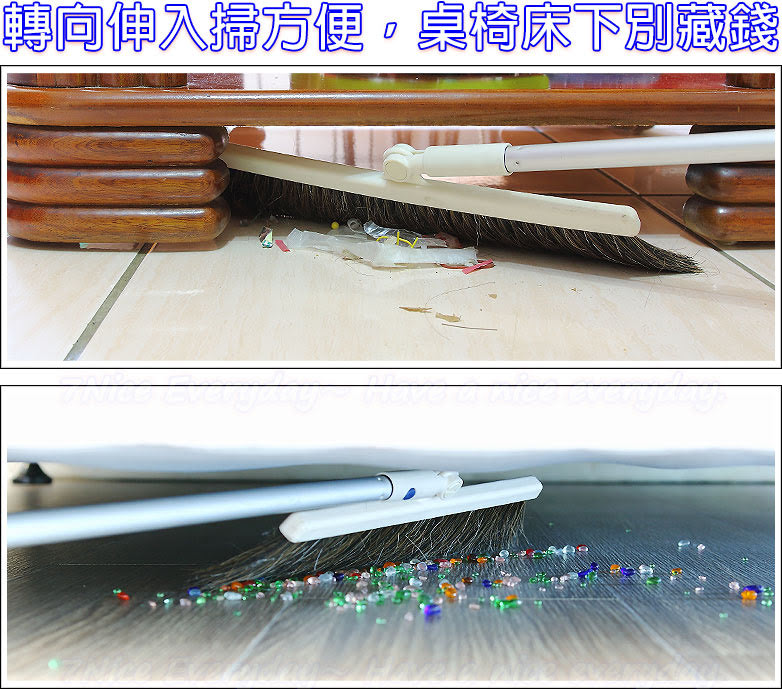 掃柄加寬,1 8 0 度調整,深入縫隙輕鬆打掃輕易掃除沙發,床下狹縫空間的髒汙!