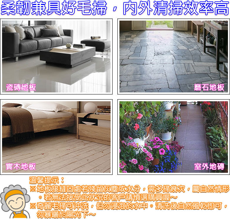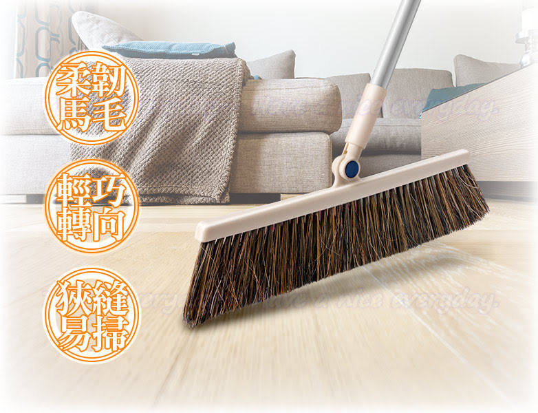 高品質馬鬃掃毛掃厚實彈性。定軸轉向無死角,輕鬆清掃不留塵。