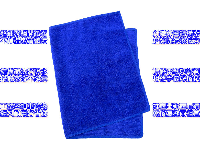 廣大擦拭面積沾水擦拭即可乾淨,雙面皆可使用,快速吸收水份,輕鬆省力氣。纖維具有稜角對粉塵之補捉性極佳,觸感輕柔舒適。超強吸水力,深層去污,不發霉發臭不掉毛。