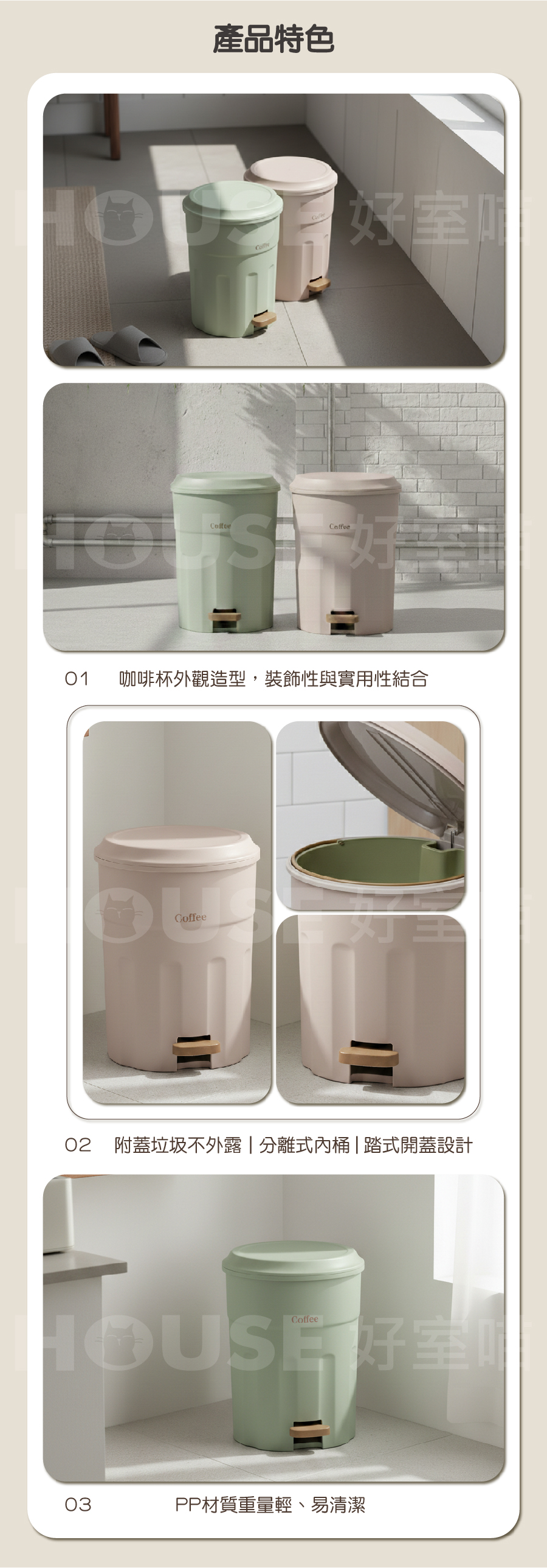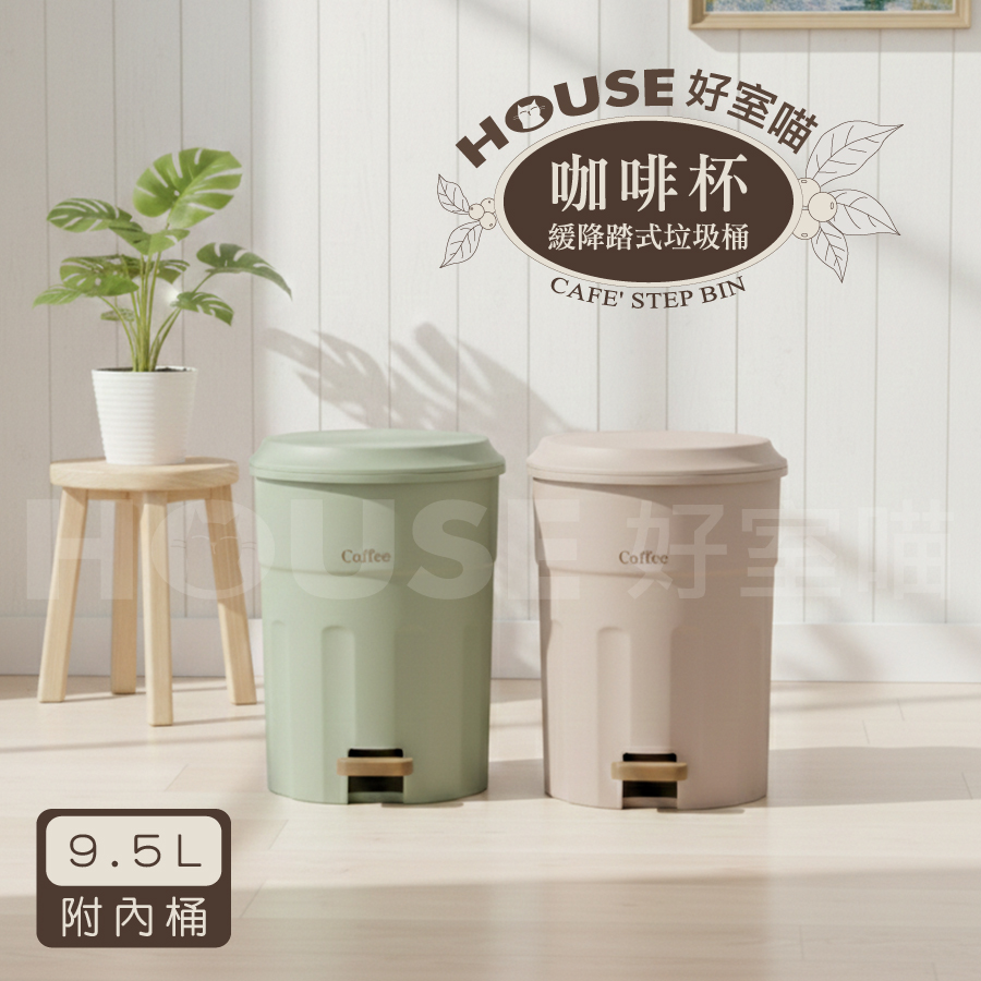 好室喵咖啡杯緩降踏式垃圾桶(附內桶)9.5L-(顏色隨機出貨)