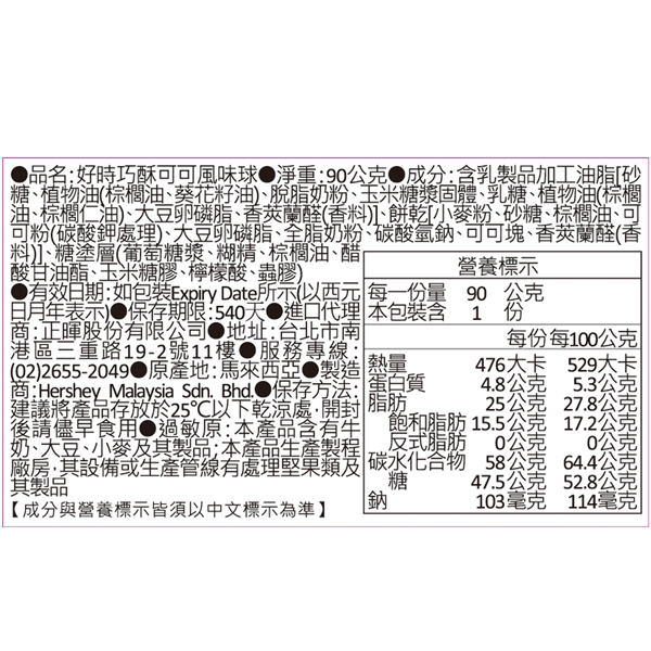 ◎品牌:好時 Hershey's ◎規格: 90g克 x 1 x 1Bag袋