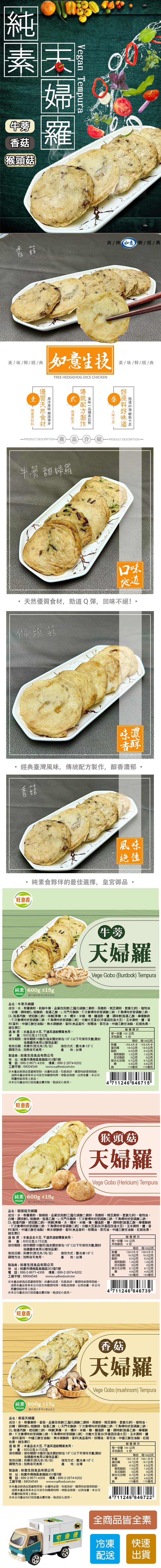 品名:猴頭菇天婦羅 成份:水、樹薯澱粉、猴頭菇、品質改良劑(乙醯化磷酸二澱粉、蒟蒻粉、豌豆澱粉、氫氧化鈣)、植物油、白糖、調味劑(L-麩酸鈉、胺基乙酸、L-天門冬酸鈉、5'次黃嘌呤核苷磷酸二鈉、5'鳥嘌呤核苷磷酸二鈉、DL-胺基丙酸、琥珀酸二鈉)、味醂[果糖、水、糯米、米麴、糖、釀造酢、鹽、調味劑(胺基乙酸、檸檬酸鈉、5'次黃嘌呤核苷磷酸二鈉、5'鳥嘌呤核苷磷酸二鈉]、分離大豆蛋白(非基因改造大豆)、玉米澱粉、鹽、香料(香料、中鏈三酸甘油酯)、無水碳酸鈉、香料(食品香料、棕櫚油、葵花油、中鏈三酸甘油酯、紅椒色素、維生素E)