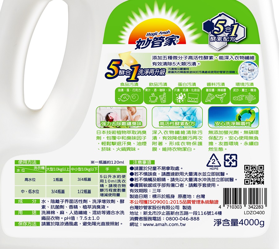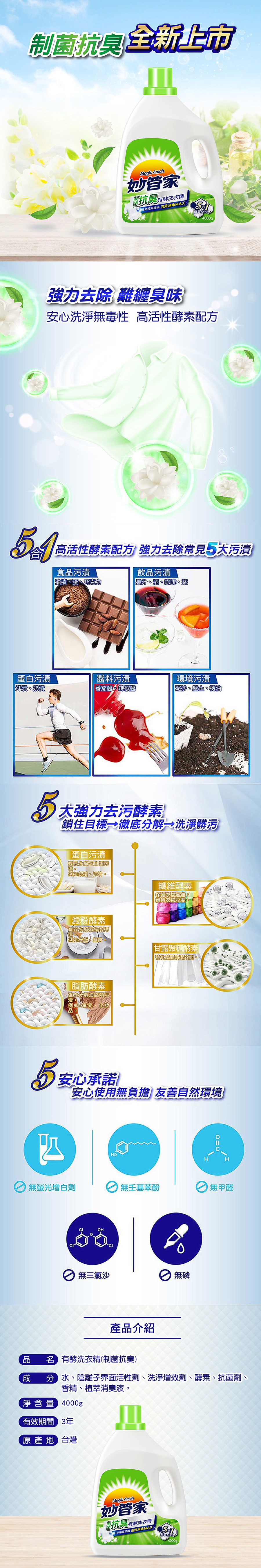 妙管家有酵洗衣精-制菌抗臭4000g