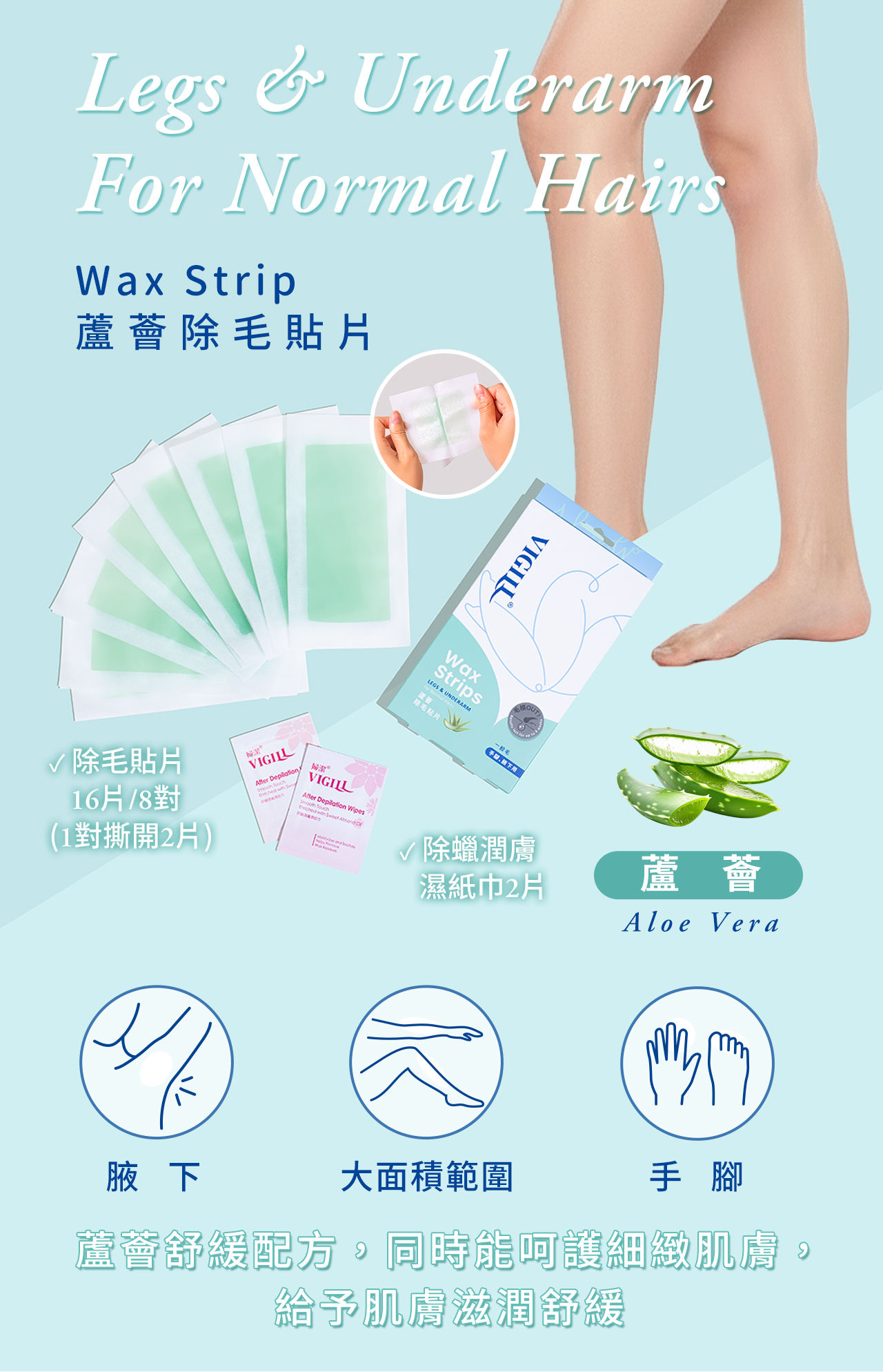 [幸一生醫] VIGILL婦潔 蘆薈除毛貼片(手腳用)16片