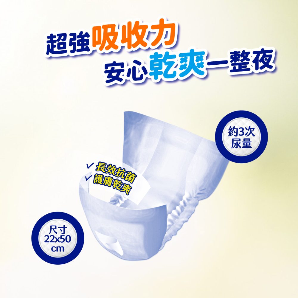 規格:22x50cm,約2~3次尿量材質/成分:不織布、紙漿、吸水紙、高分子吸收體、聚乙烯膠膜保存期限:3年保存方法:避免太陽直射及潮濕處產地:台灣