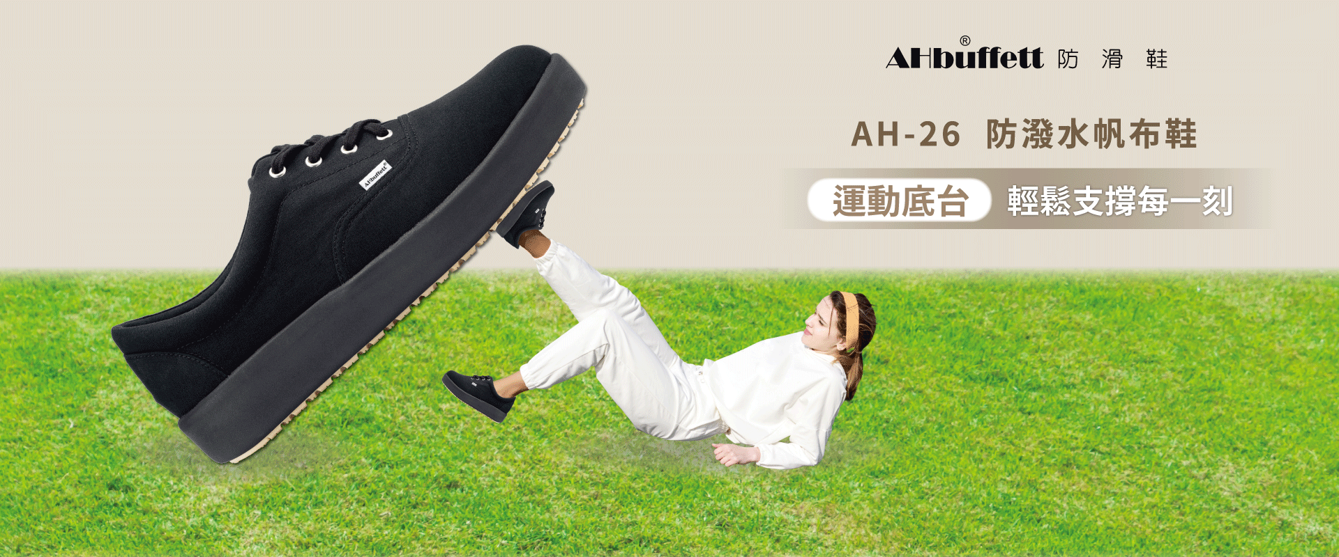 【AHbuffett防滑鞋】AH-26 防潑水帆布鞋 防滑 休閒 帆布鞋 EVA鞋底 寬楦 防潑水 懶人鞋 氣墊腳感 止滑鞋