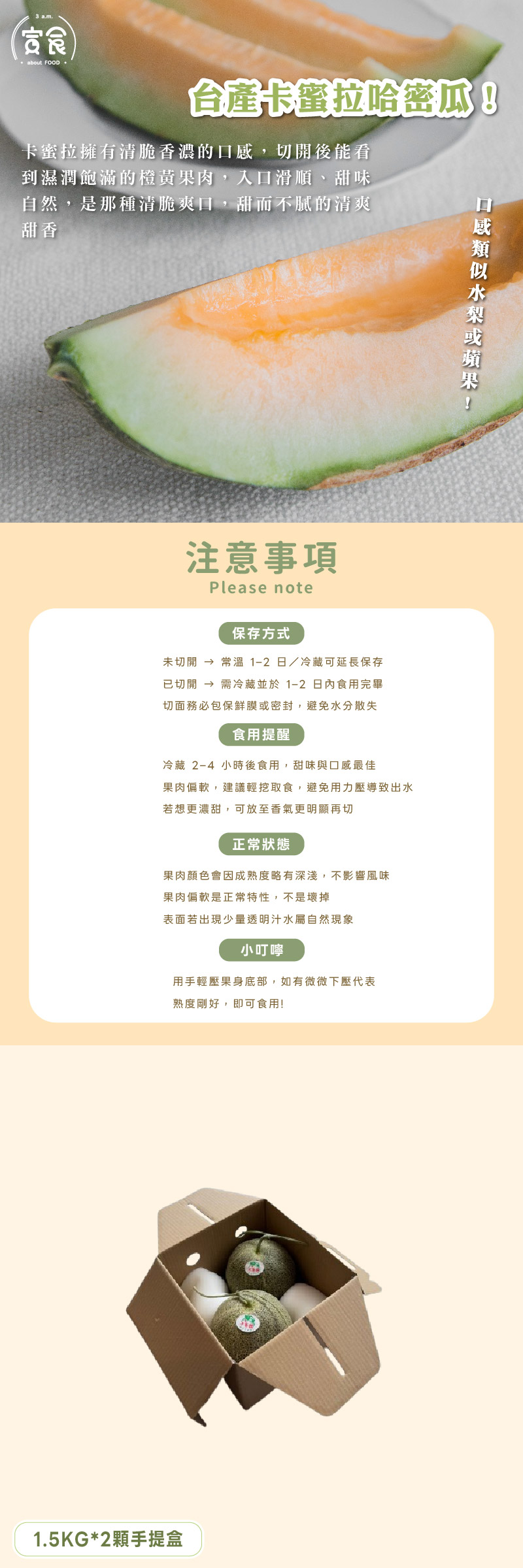 【寅食3 a.m.】台產頂級卡蜜拉哈密瓜1.5KG*2顆手提盒