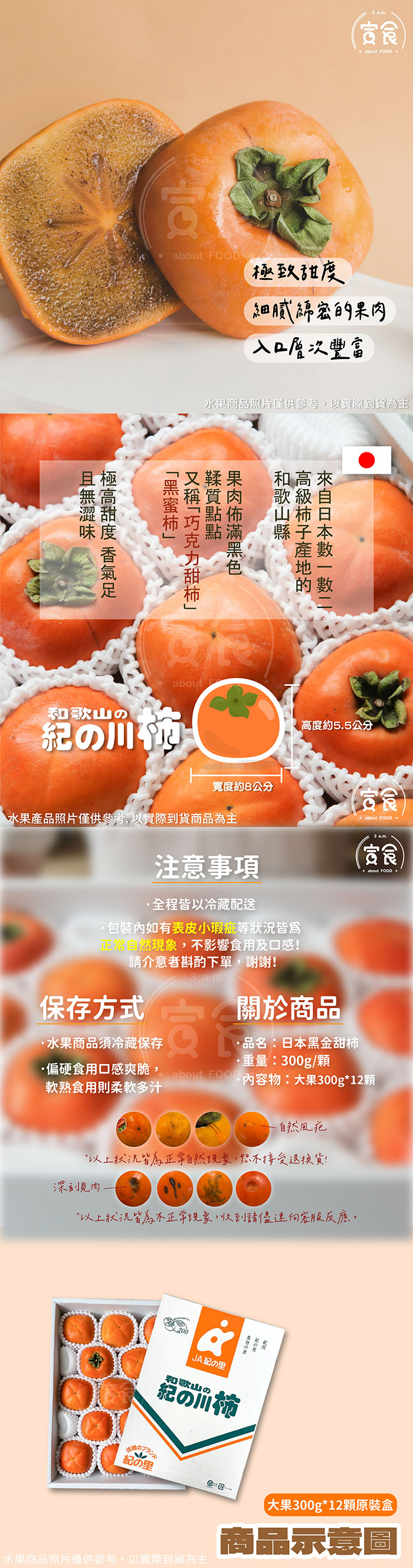 【寅食3 a.m.】日本和歌山黑糖柿子大果300g*12顆原裝盒