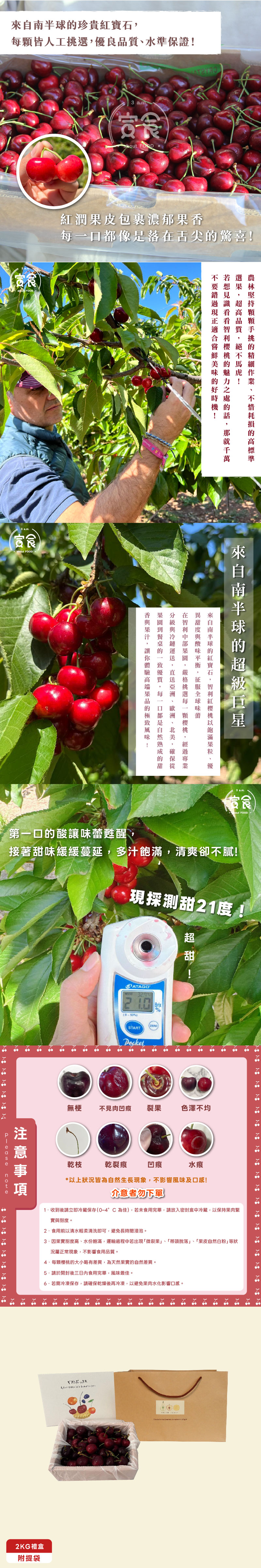 【寅食3 a.m.】智利空運紅櫻桃3J/2KG禮盒(附提袋)