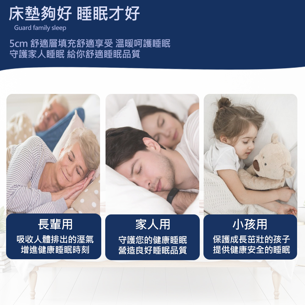 內容/規格:5CM雙人-5x6.2尺 (152 x 188±2cm)表布:100% Polyester (3M防潑水技術舒柔布) 填充物:100%聚酯纖維 (高密度記憶泡棉)(含竹碳纖維) 床墊套洗滌方式:可水洗/不可烘乾/不可漂白/懸掛晾乾/不可熨燙 原產地:台灣精製